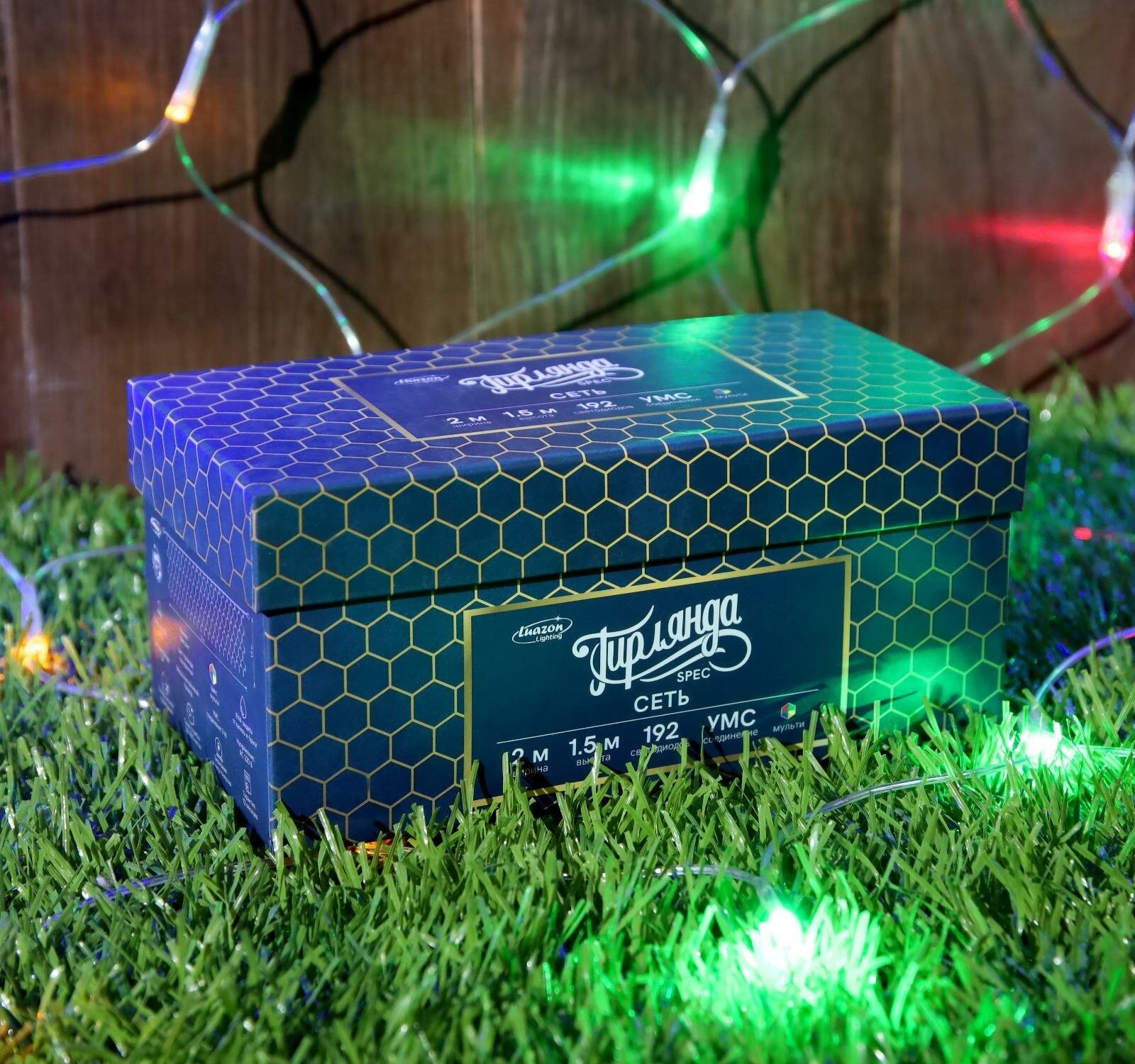Гирлянда"Сеть" 2 х 1.5 м , Ip44, Умс, прозрачная нить, 192 Led, свечение мульти, 220 В Luazon Lighti
