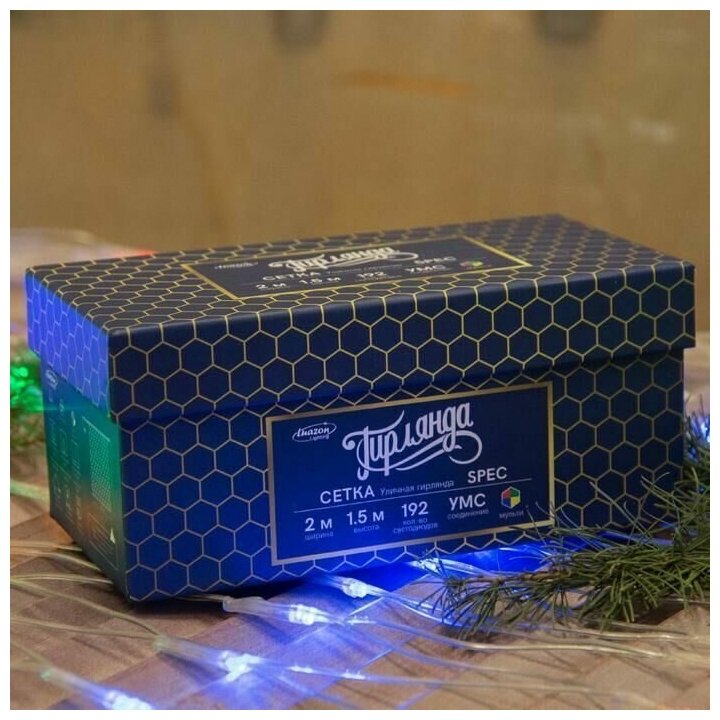 Гирлянда Luazon Lighting Spec Сетка, 0.26 х 3 х 2 м, 2 х 3 м, 384 лампы, синий/белый провод