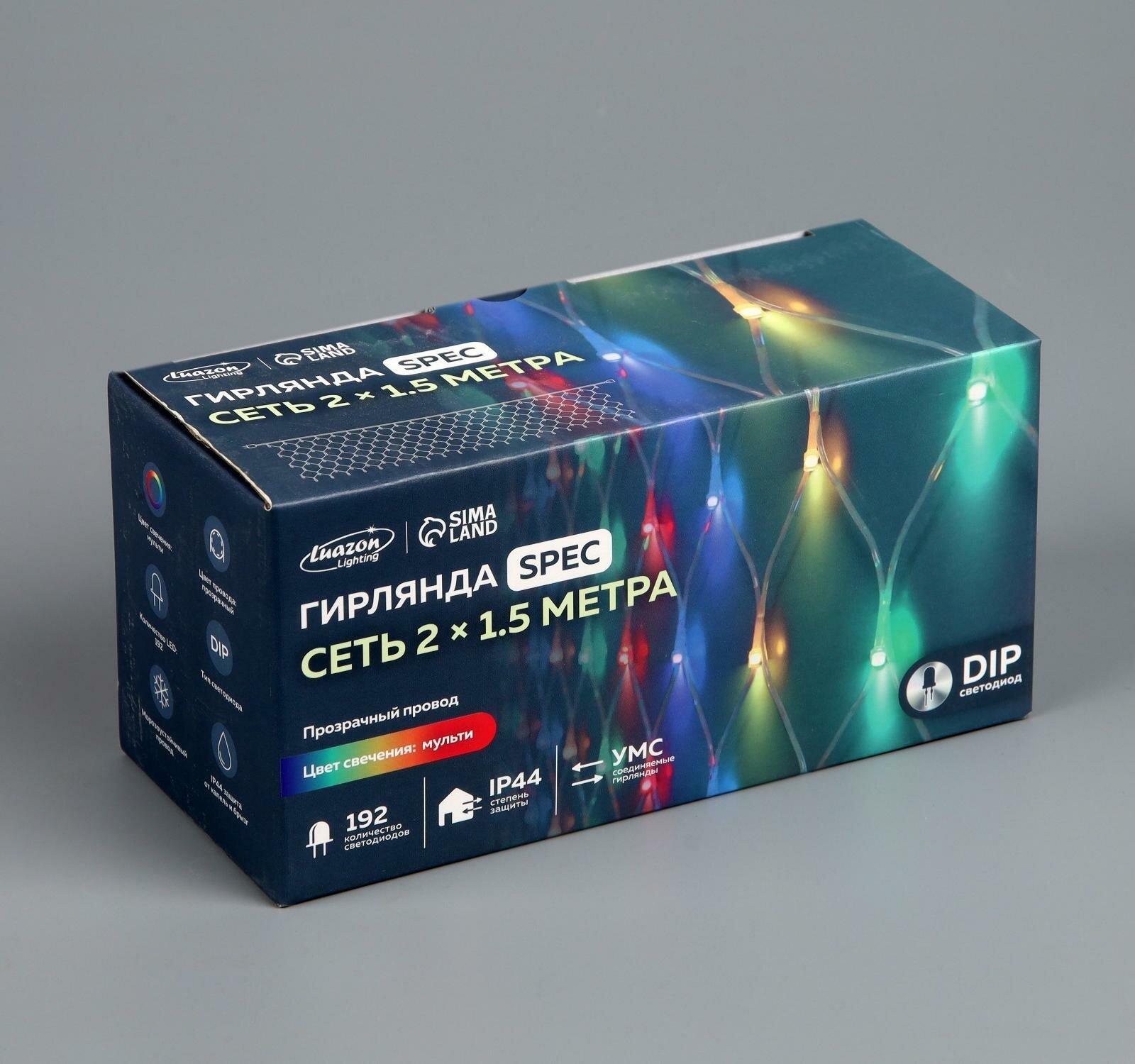 Купить Luazon Lighting Гирлянда «Сеть» 2 × 1.5 м, IP44, УМС, прозрачная нить, 192 LED, свечение мульти, 220 В
