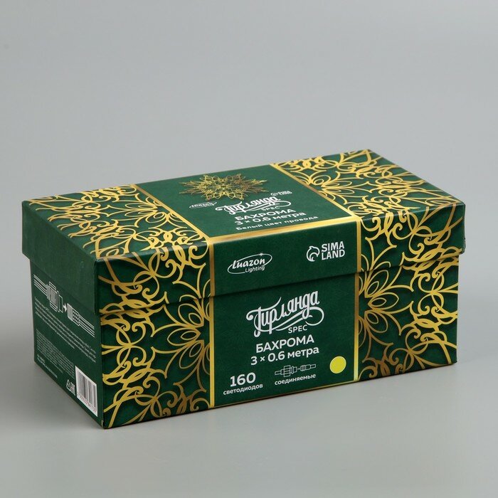Гирлянда «Бахрома» 3 × 0.6 м, IP44, УМС, белая нить, 160 LED, свечение белое, 220 В (арт. 1080174)