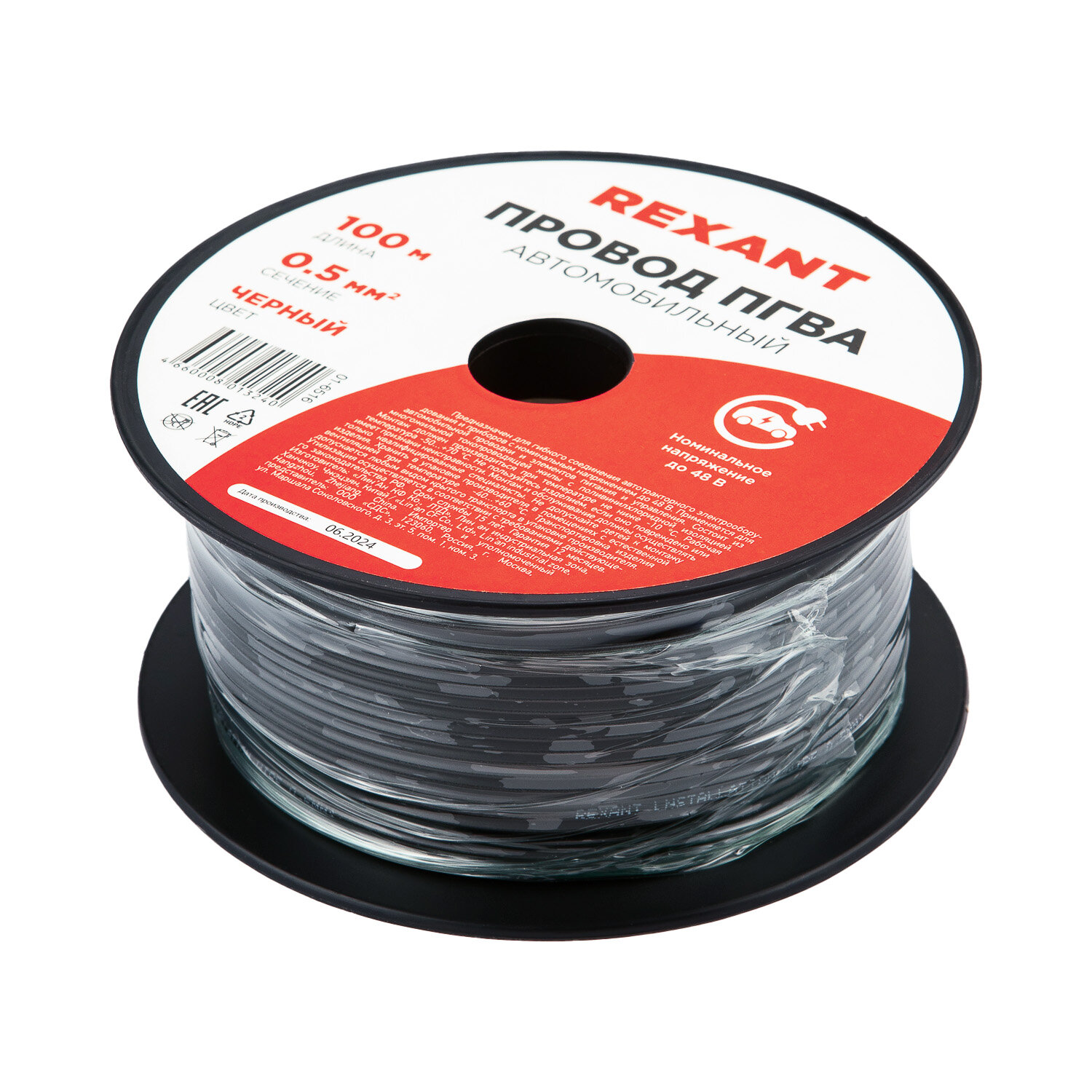 Купить Провод автомобильный ПГВА/ПВАМ REXANT, 1х0,5 мм², бухта 100 м, черный