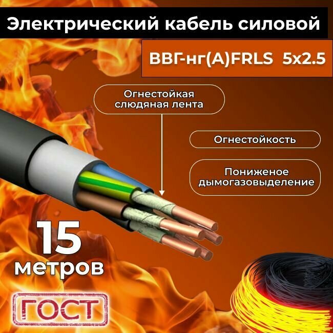 Провод электрический огнестойкий/кабель ГОСТ 31996-2012 ВВГнг(А)-FRLS 5х1,5 - 15 м.