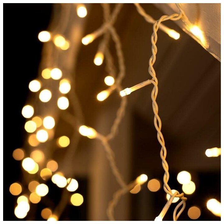 Гирлянда «Бахрома» 3 × 0.6 м, IP44, УМС, белая нить, 160 LED, свечение жёлтое, мерцание белым, 220 В