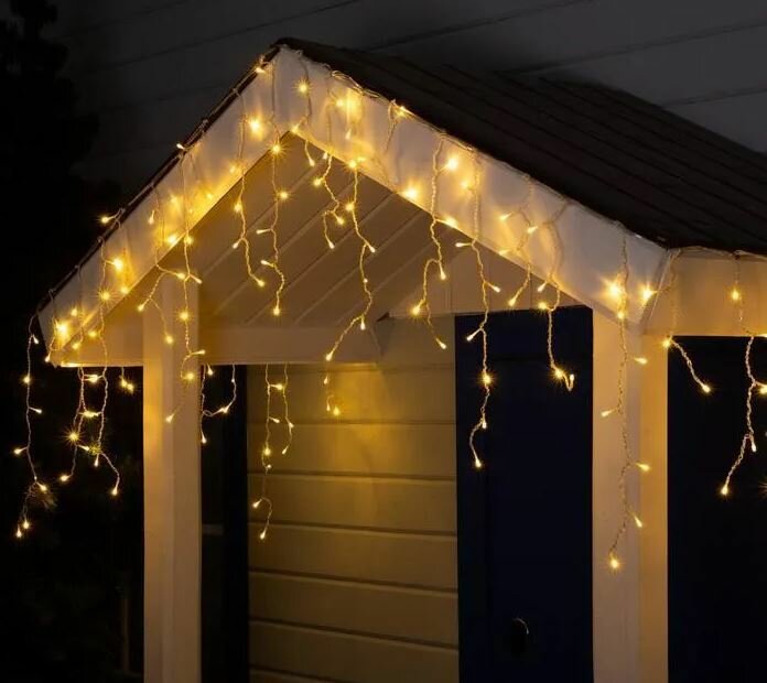 Гирлянда «Бахрома» 4 × 0.6 м, IP44, белая нить, 180 LED, свечение тёплое белое, 8 режимов, 220 В