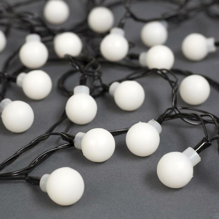 Гирлянда Нить 5 м с насадками Шарики белые, IP20, тёмная нить, 30 LED, свечение тёплое белое, 8 режимов, 220 В