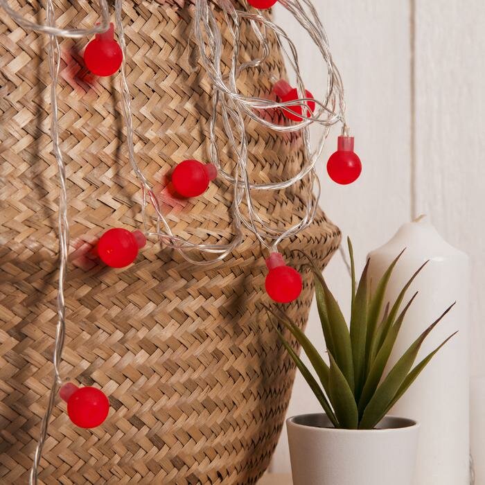 Luazon Lighting Гирлянда «Нить» 5 м с насадками «Шарики красные», IP20, прозрачная нить, 30 LED, свечение красное, 8 режимов, 220 В