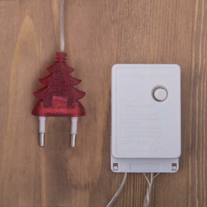 | Плюсы: | Выполнено качественно, выглядит симпатично, прозрачный провод не бросается в глаза. Несколько режимов мигания, как на большинстве елочных гирлянд. |