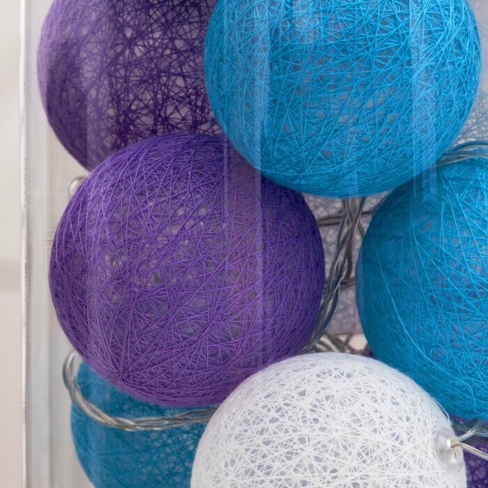 Купить Гирлянда «Нить» 5 м с насадками «Клубки черничные», IP20, прозрачная нить, 20 LED, свечение белое, 220 В