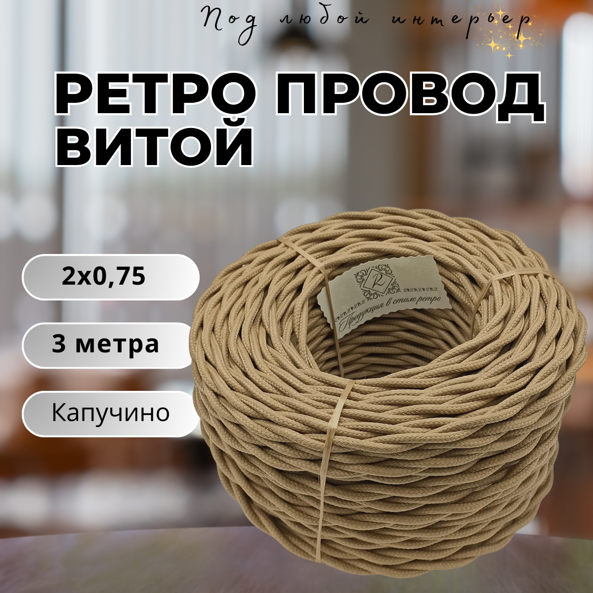 Витой ретро провод BIRONI Бирони 3х2,5 матовый, 3 м/уп, B1-435-716-3, цвет: КАПУЧИНО