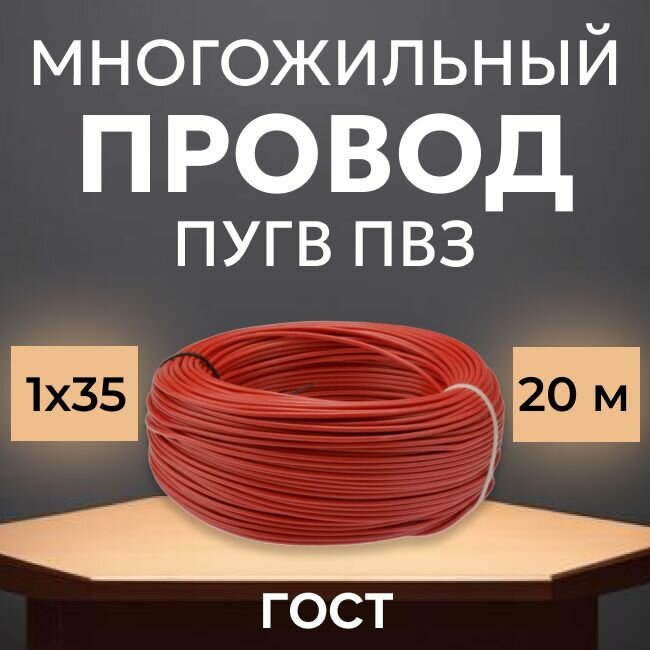 Купить Провод электрический многожильный ПУГВ ПВ3, 750В, 1х35 красный 20м