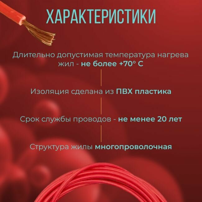 Провод электрический многожильный ПУГВ ПВ3, 450В, 1х6 красный 2м