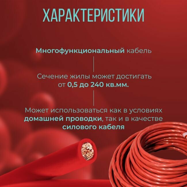 Провод электрический многожильный ПУГВ ПВ3, 750В, 1х50 красный 6м