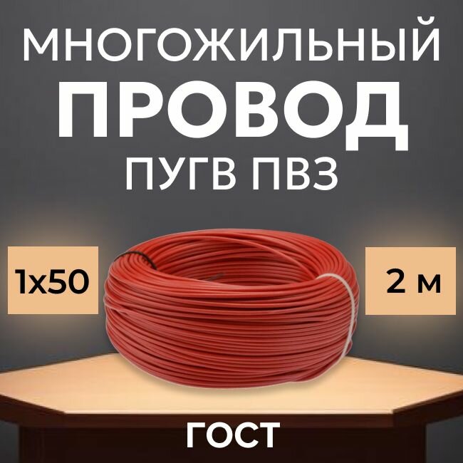 Купить Провод электрический многожильный ПУГВ ПВ3, 750В, 1х50 красный 2м