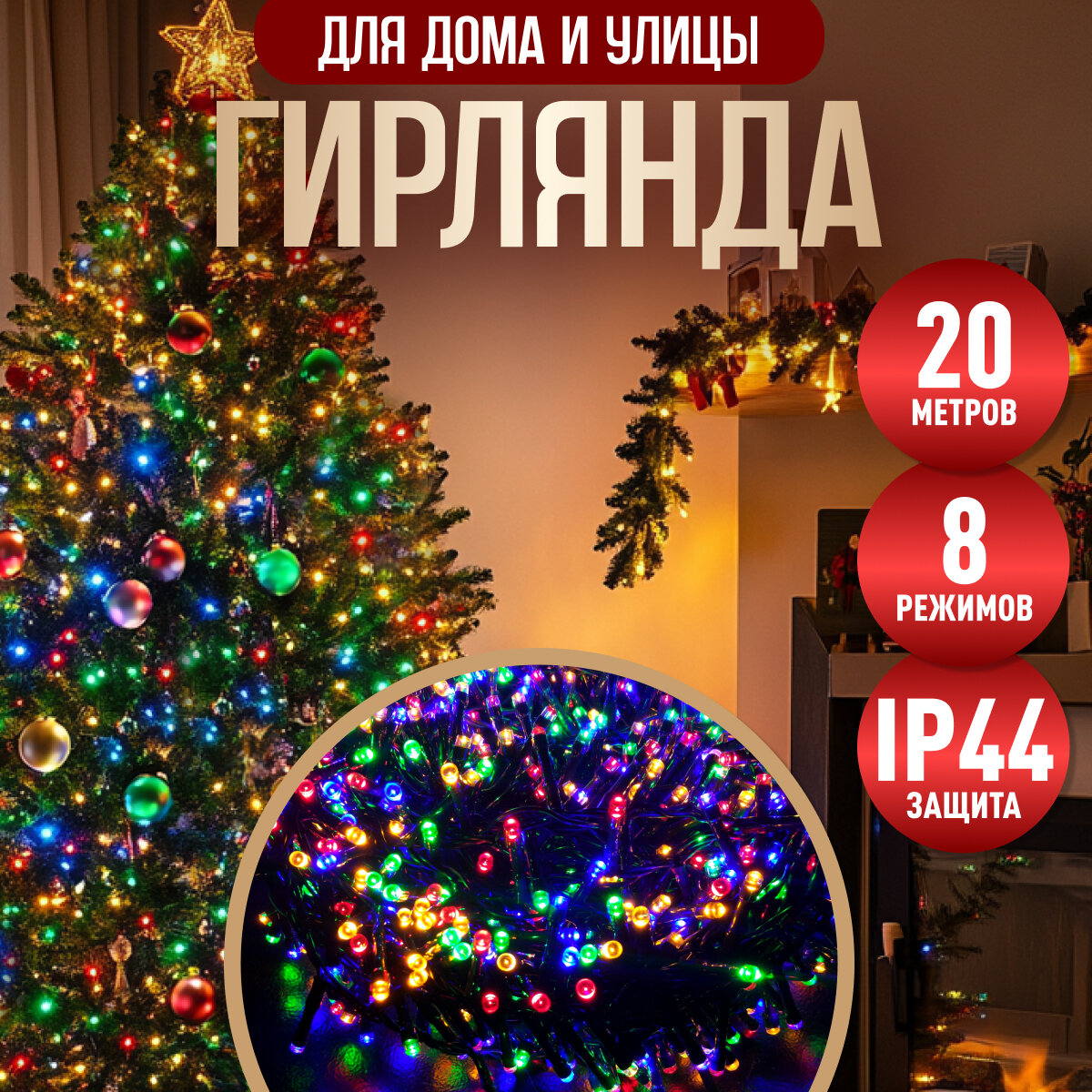 Светодиодная гирлянда (мультиколор) Winter Glade CM1000 для улицы и дома 2000 см