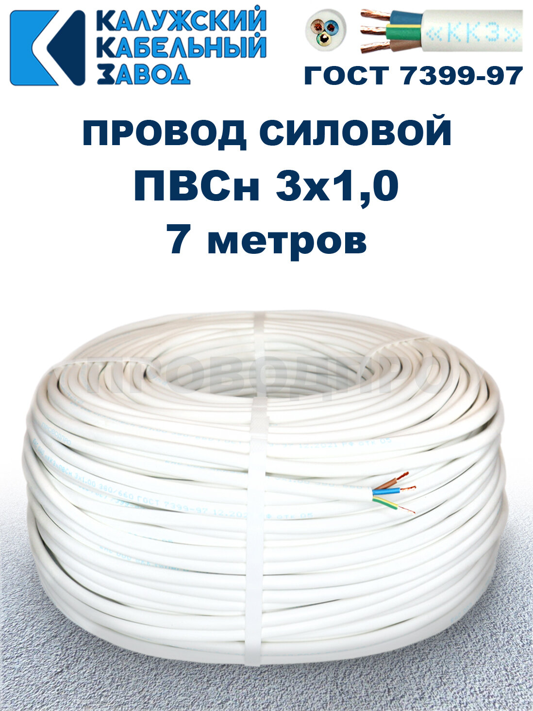 СохранитьПровод ПВС 3х1,0 ГОСТ, 7 метров. Белый. Калужский кабельный завод интересное: