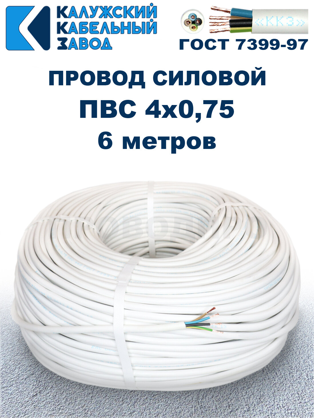 СохранитьПровод ПВС 4х0,75 ГОСТ, 6 метров. Белый. Калужский кабельный завод интересное: