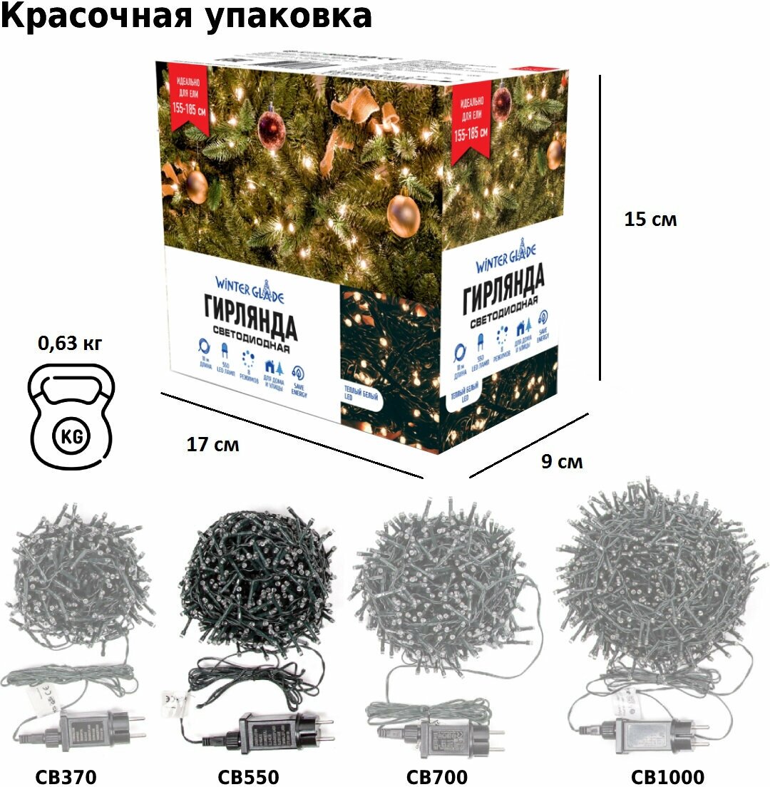 Ёлочная гирлянда Winter Glade Теплый белый свет 550 ламп (Длина гирлянды: 1100 см. Для елки 155-185 см. 8 режимов.) CВ550
