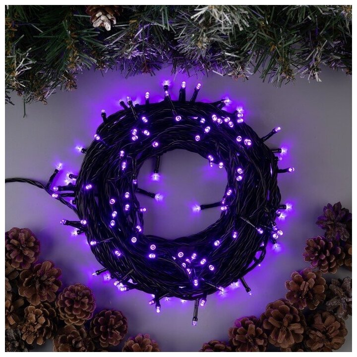 Гирлянда «Нить» 20 м, IP44, тёмная нить, 200 LED, свечение фиолетовое, 8 режимов, 220 В