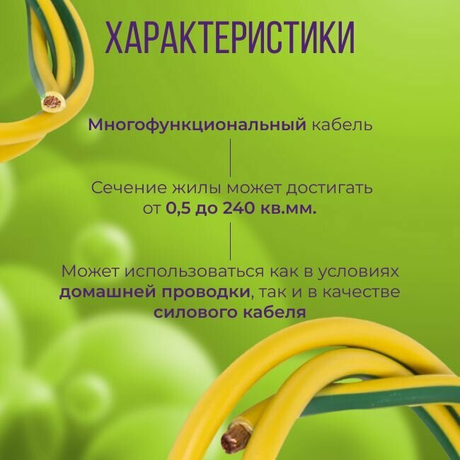 Провод электрический многожильный ПУГВ ПВ3, 750В, 1х95 желто-зеленый 3м