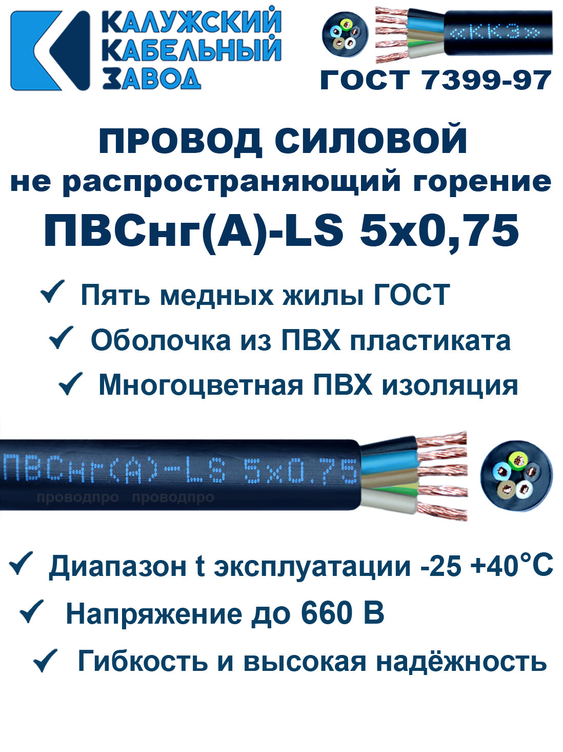 СохранитьПровод ПВСнг(A)-LS 5х0,75, ГОСТ, 5 метров интересное: