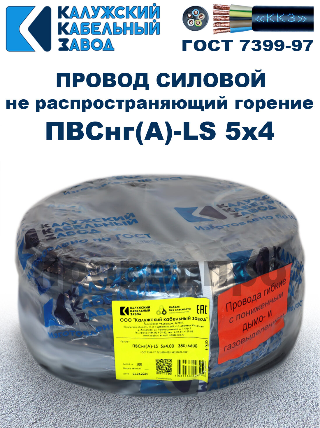 Провод ПВСнг(A)-LS 5х4,0, ГОСТ, 25 метров