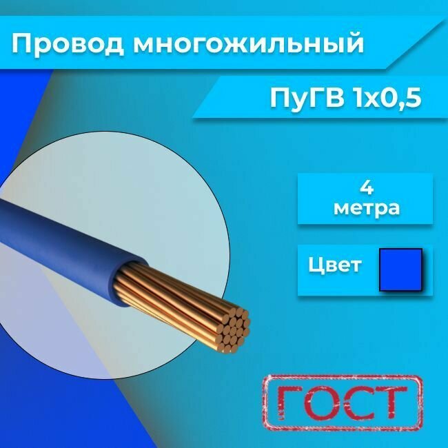 Купить Провод электрический многожильный ПУГВ ПВ3, 450В, 1х0.5 синий/голубой 4м
