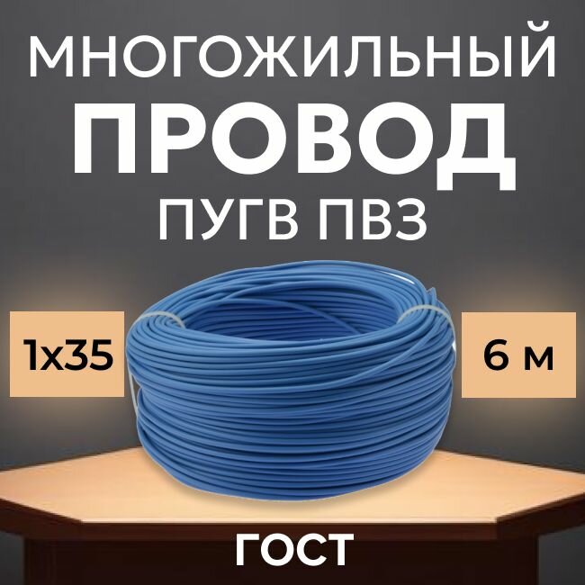 Купить Провод электрический многожильный ПУГВ ПВ3, 750В, 1х35 синий 6м