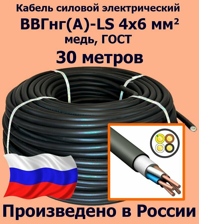 Купить Кабель силовой электрический ВВГнг(A)-LS 4х6 мм2, медь, ГОСТ, 30 метров