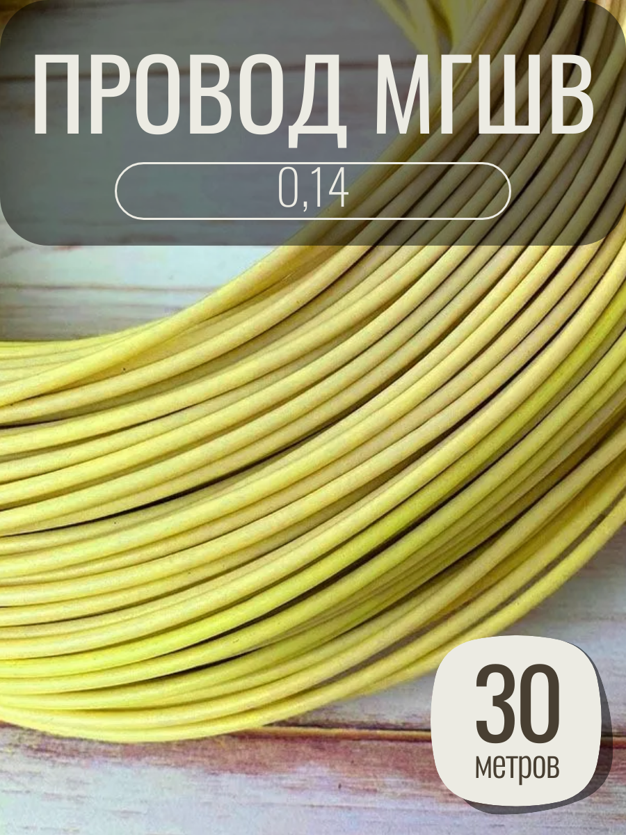 Провод мгшв 0.12, медь, ПВХ, 1 жила, цвет желтый, длина 30 метров