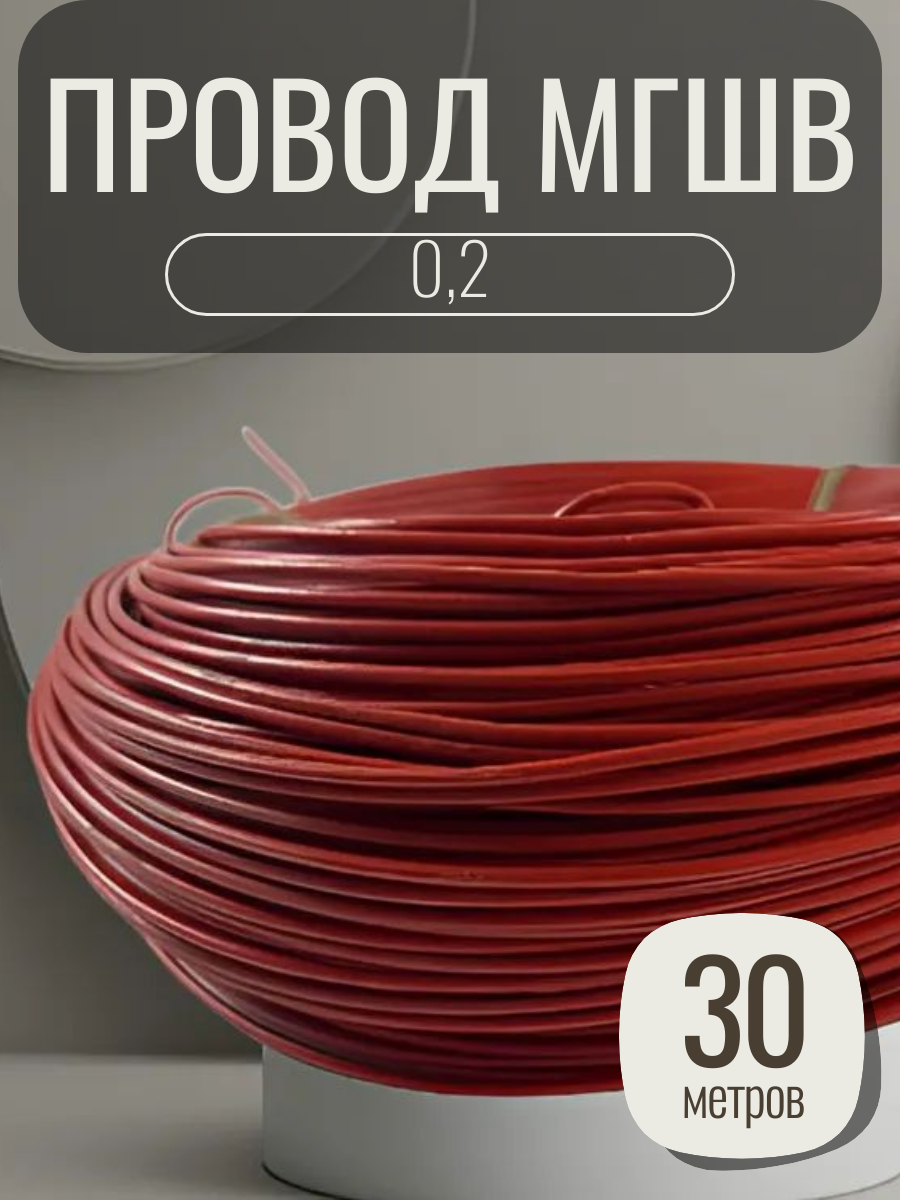Провод мгшв 0.14, медь, ПВХ, 1 жила, цвет красный, длина 30 метров