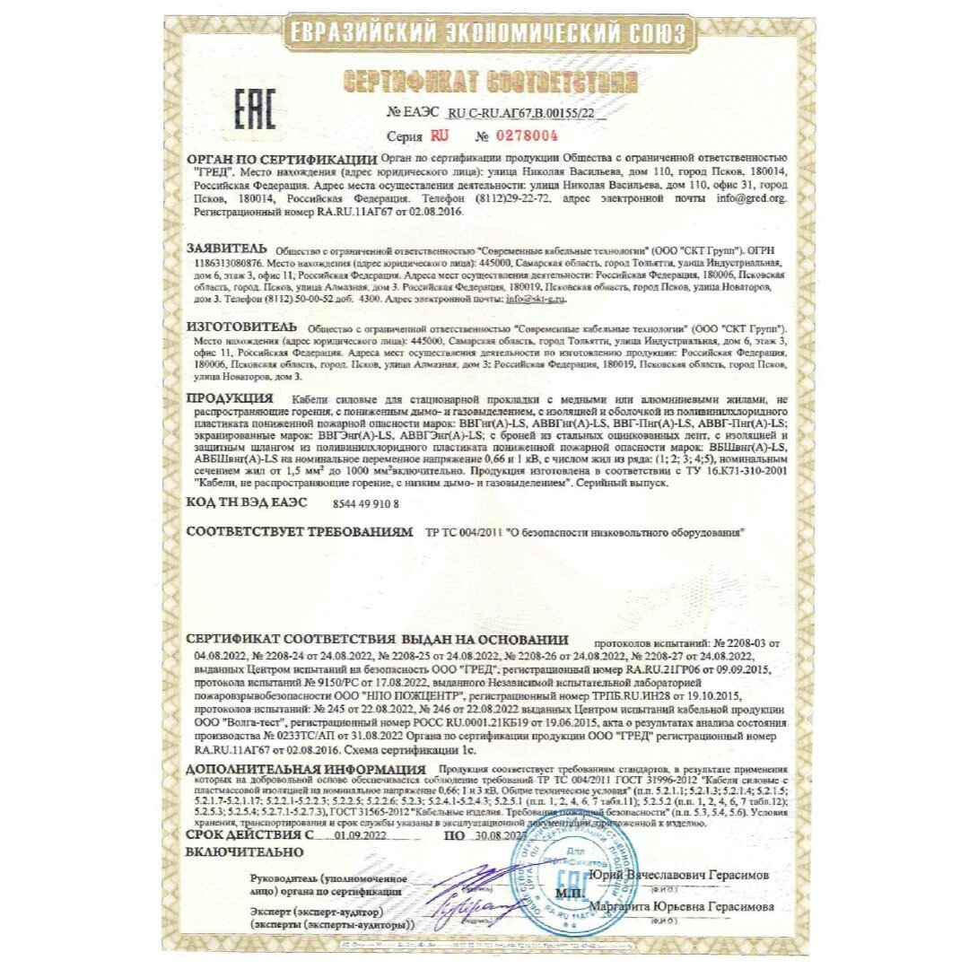 Кабель электрический термостойкий пркс 5х2,5 СПКБ Техно(ГОСТ), 2 метра