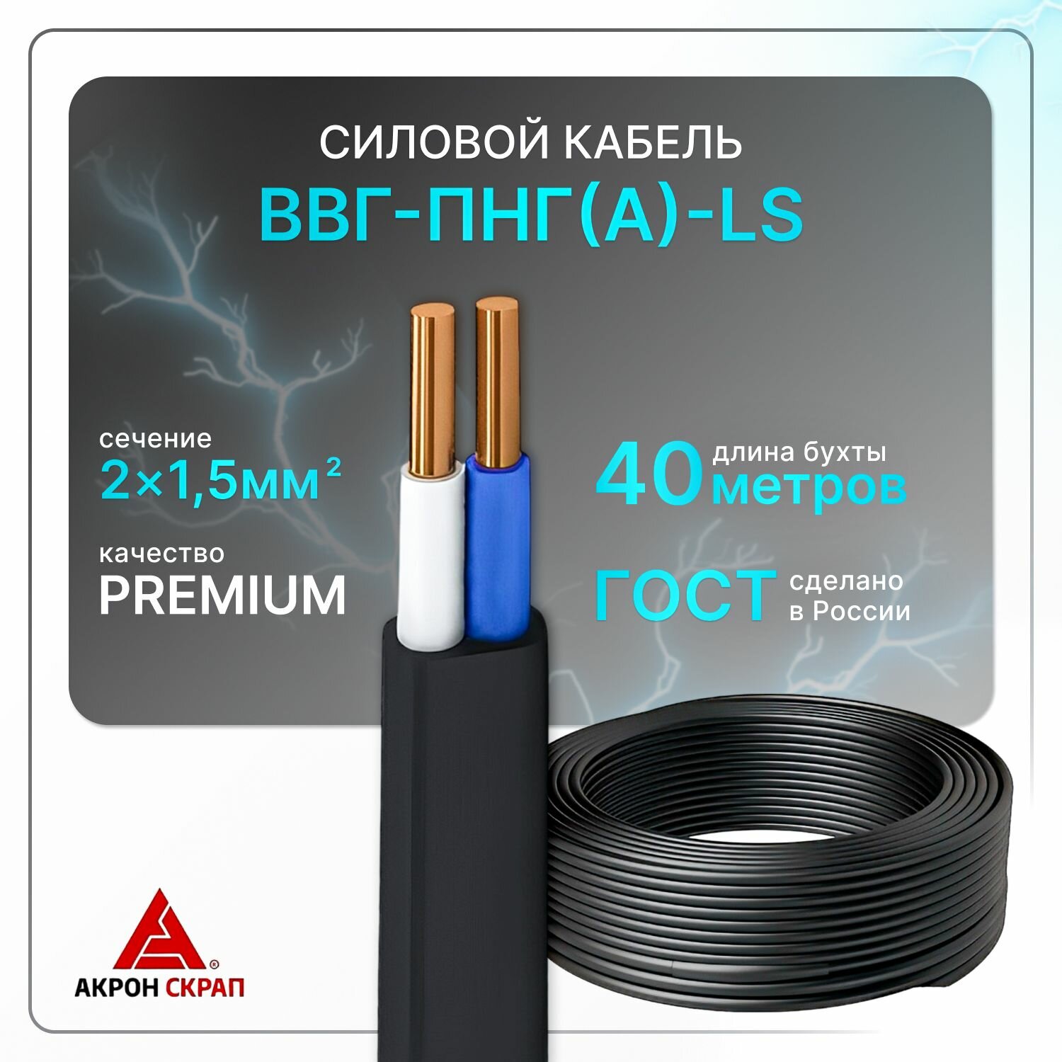 Купить Силовой кабель рэмкабель ВВГ-Пнг(А)-LS 2х1.5 черный ГОСТ плоский 40 м