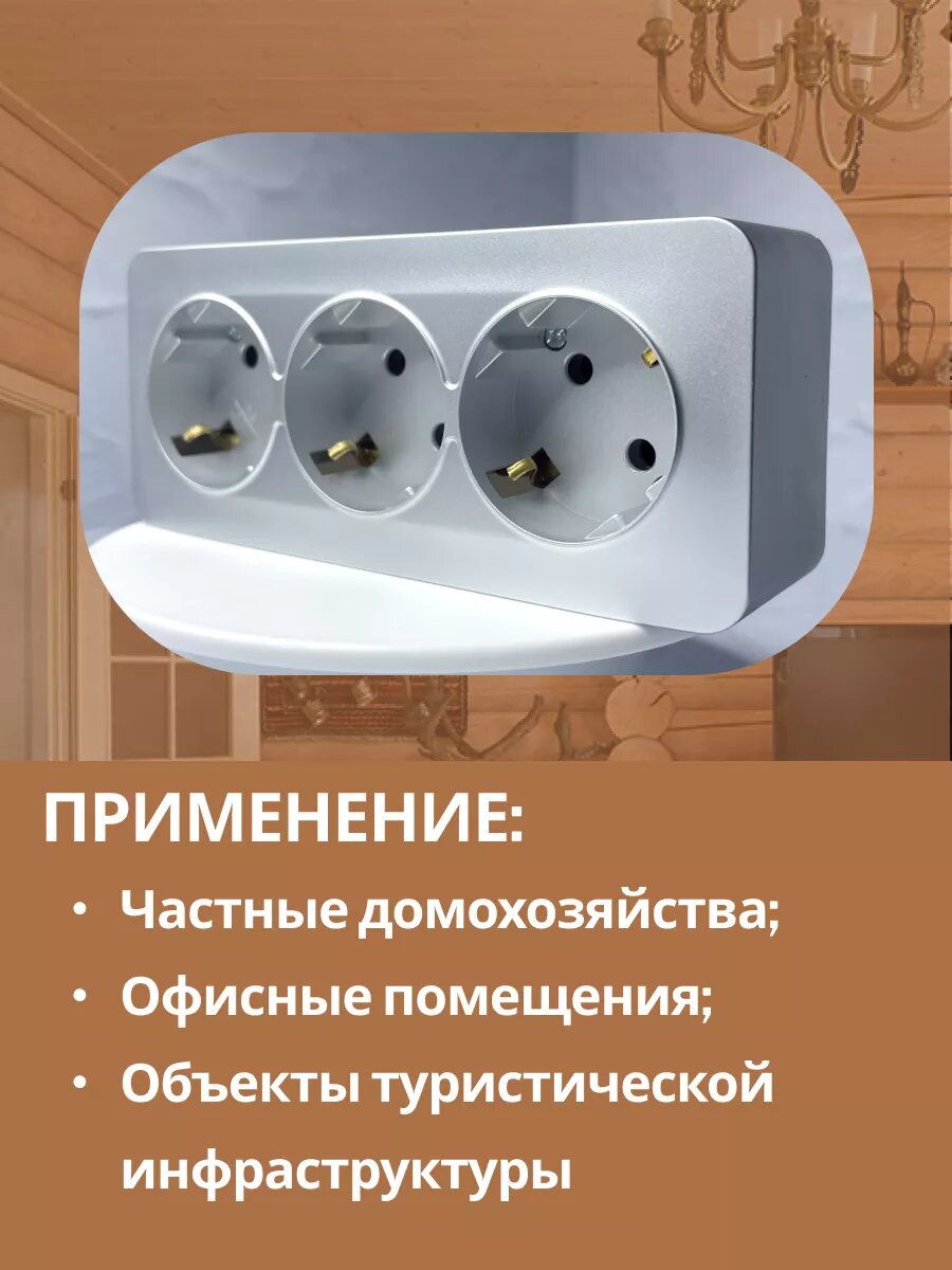 СохранитьРозетка накладная STEKKER София, 3 гнезда, с заземлением, IP20, серебро интересное: