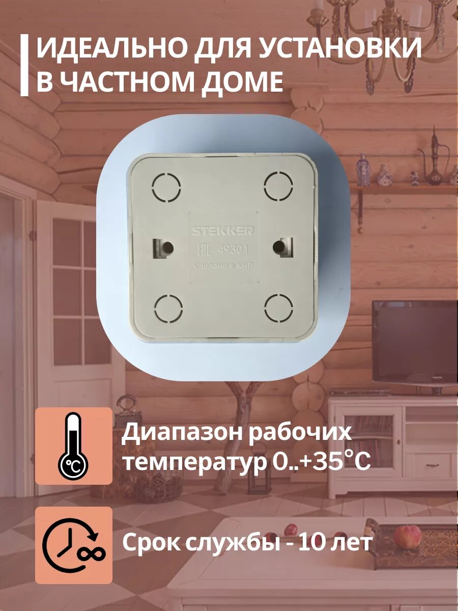 Розетка накладная STEKKER София, 2 гнезда, с заземлением, IP20, цвет слоновая кость