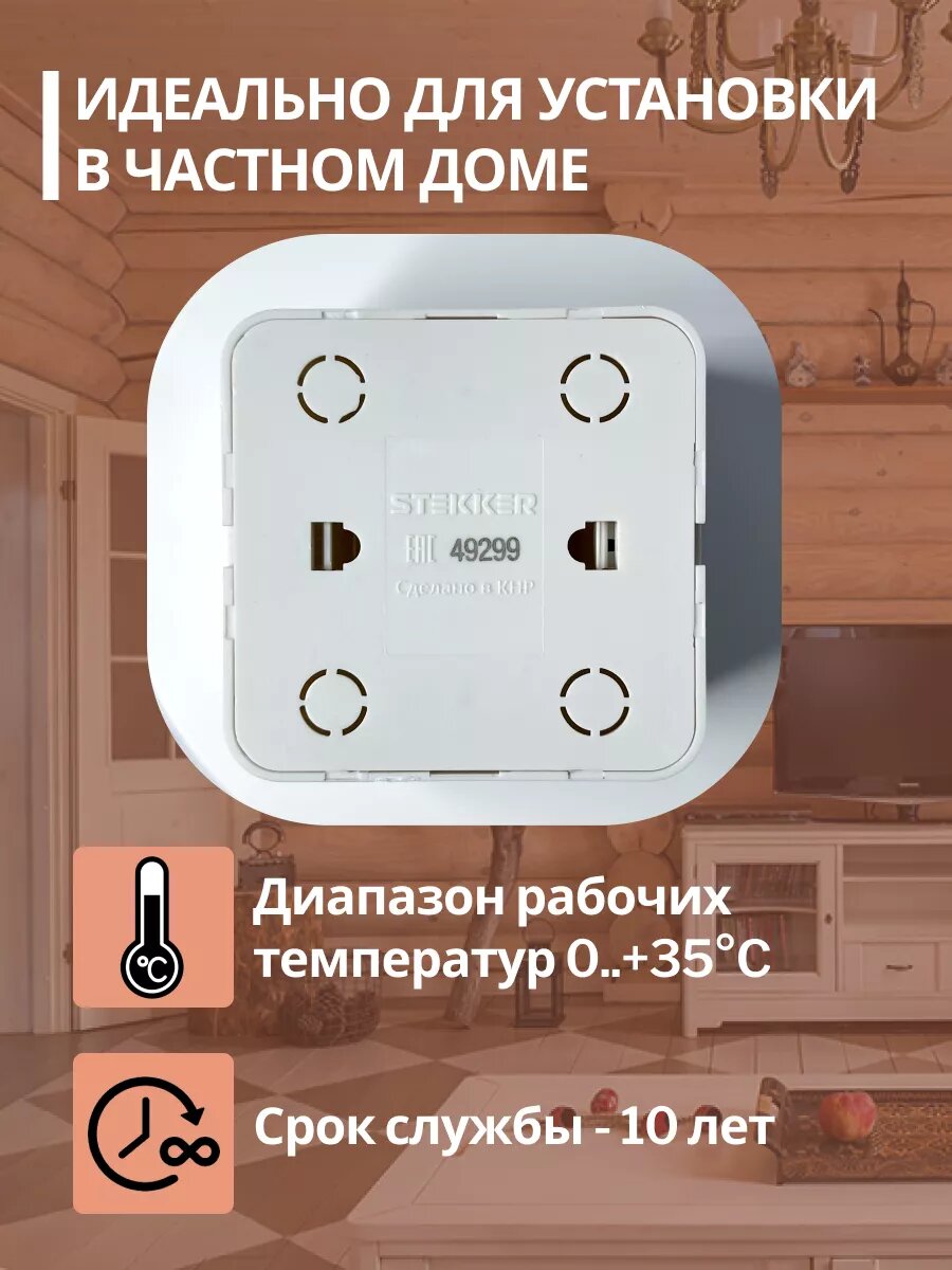Розетка накладная STEKKER София, 2 гнезда, с заземлением, IP20, белый