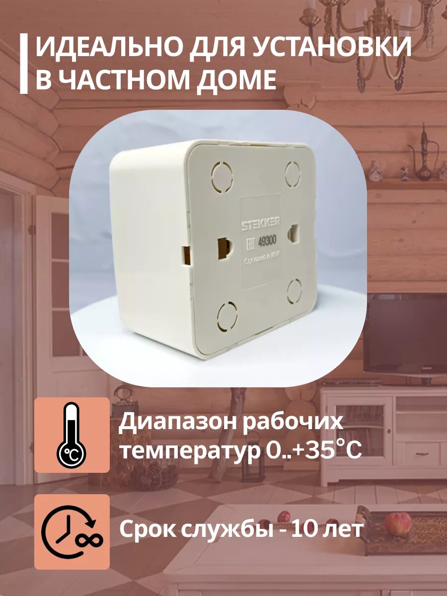 Розетка накладная STEKKER София, 3 гнезда, с заземлением, IP20, цвет слоновая кость