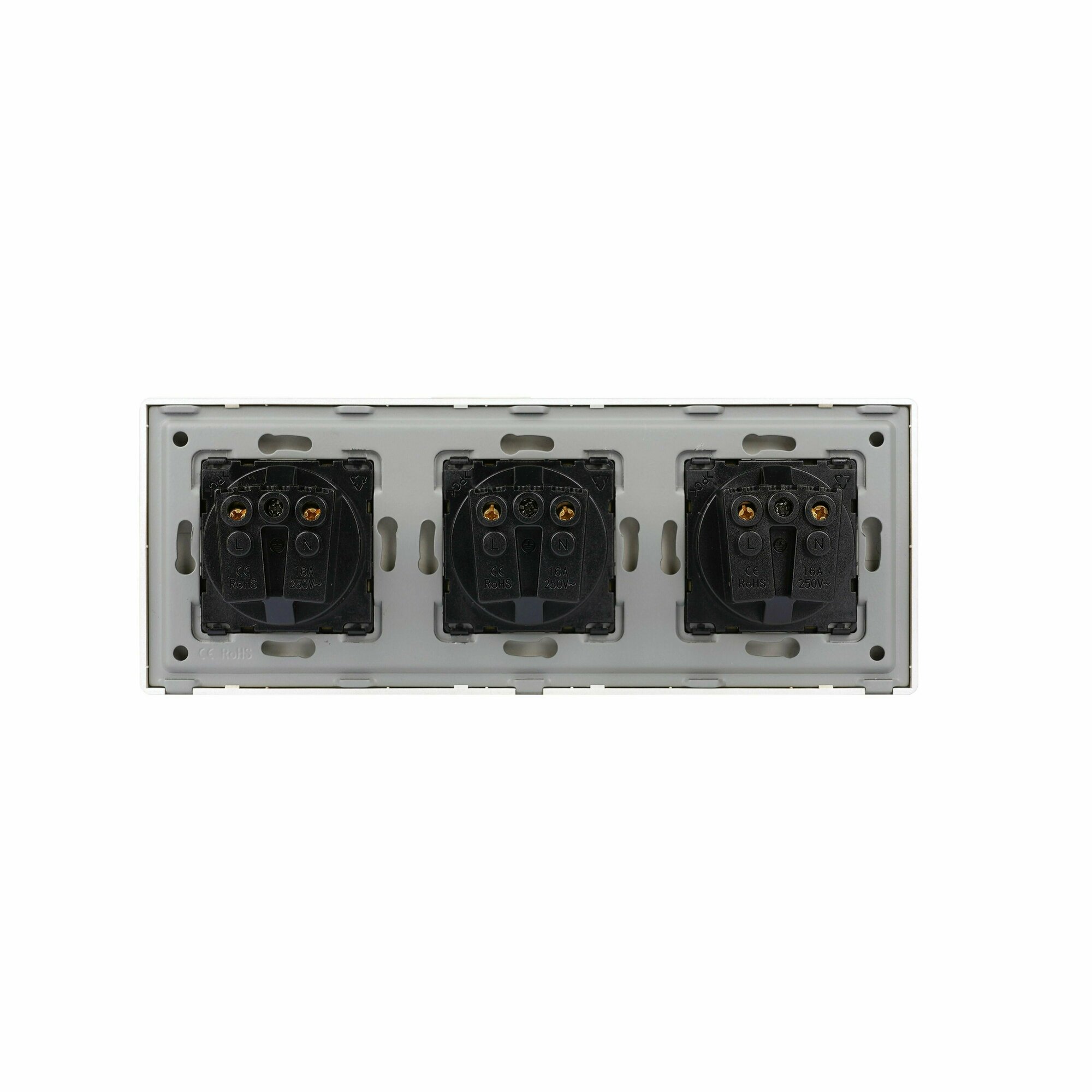 Купить Розетка электрическая 3 поста 16А, рамка228х86мм пластик, цвет золотой