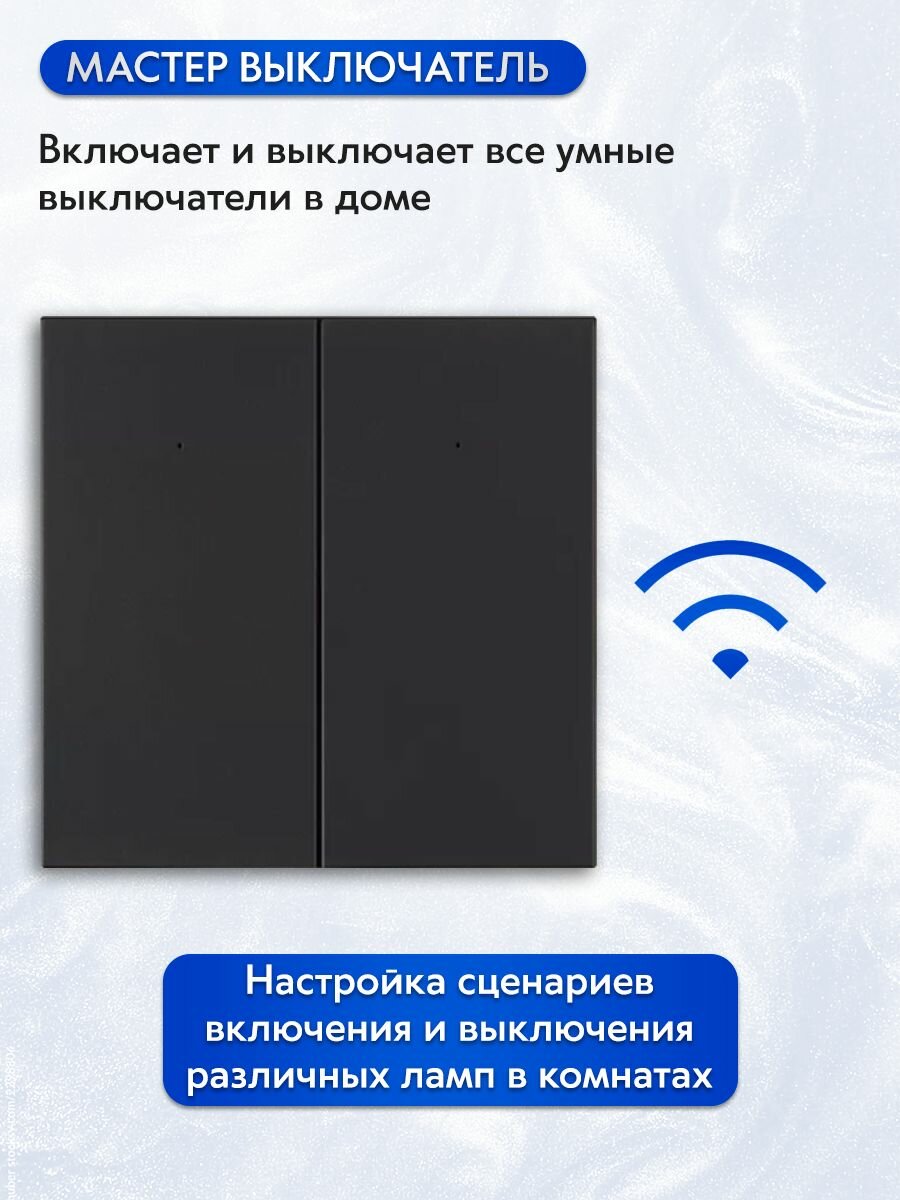 Умный выключатель Zigbee с Алисой двухклавишный черный сенсорный