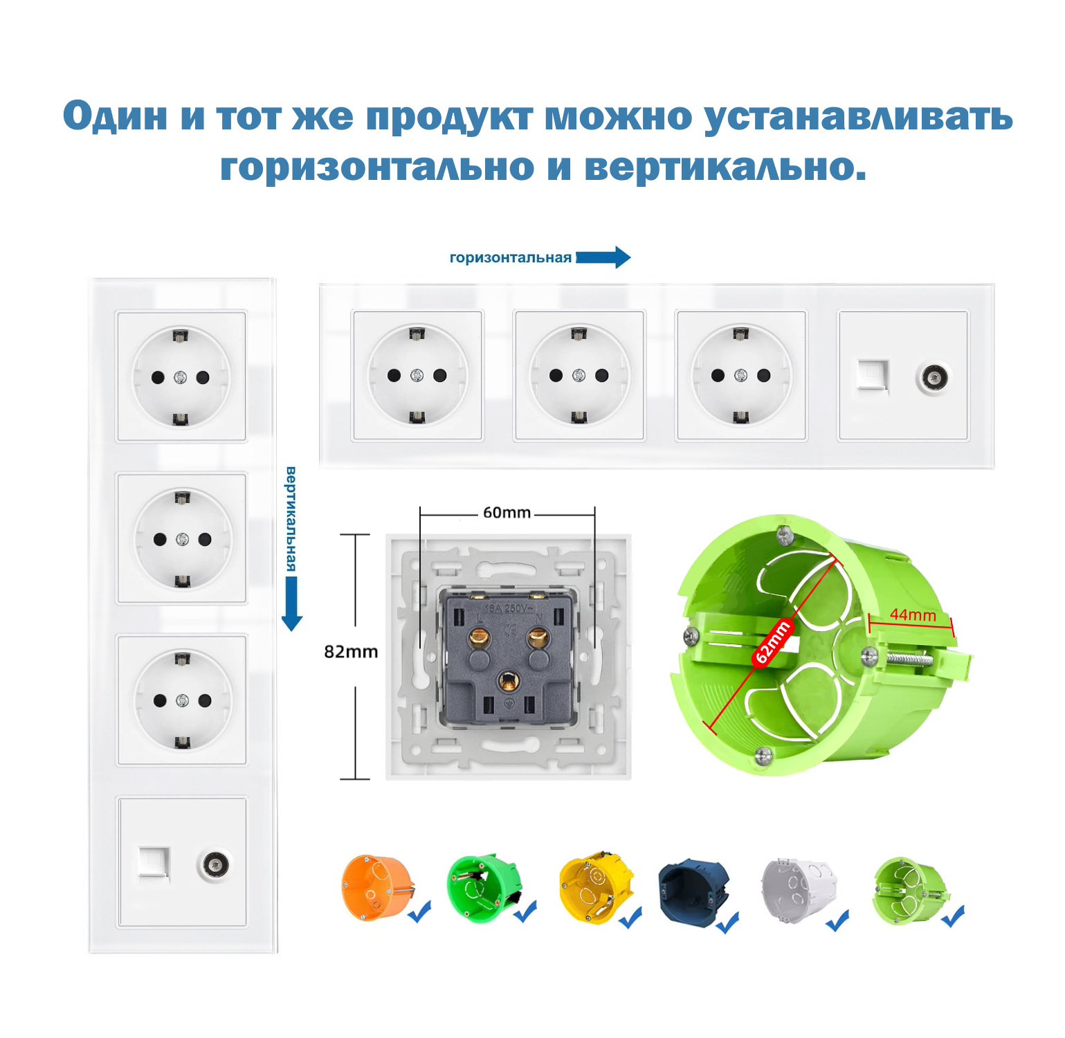 СохранитьРозетка ТВ и интернет 4 поста, антенна ТВ/компьютер RJ-45 CAT6 рамка закаленное стекло 295*82*8 мм, цвет белый интересное: