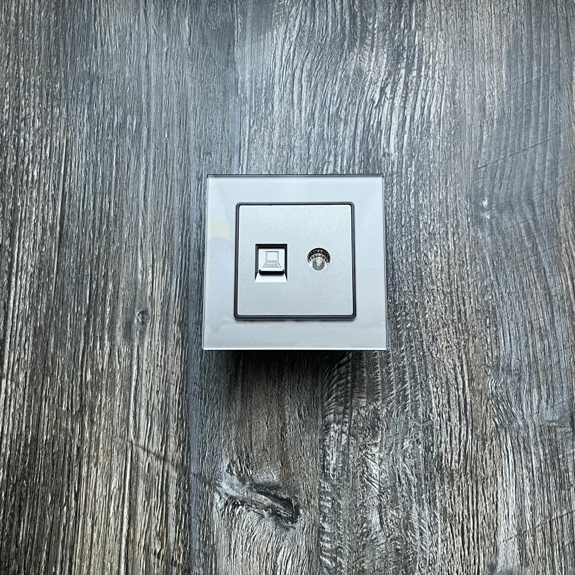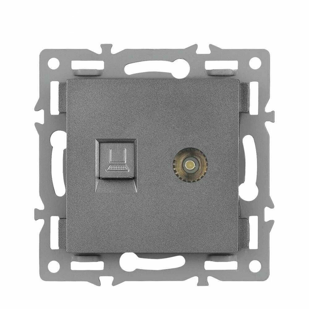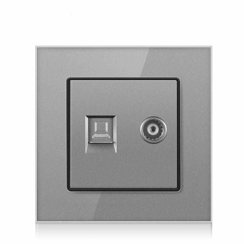 СохранитьРозетка ТВ и интернет 1 пост, антенна/компьютер RJ-45-CAT5E/ТВ, интернет+ТВ, рамка закаленное стекло, цвет серый интересное: