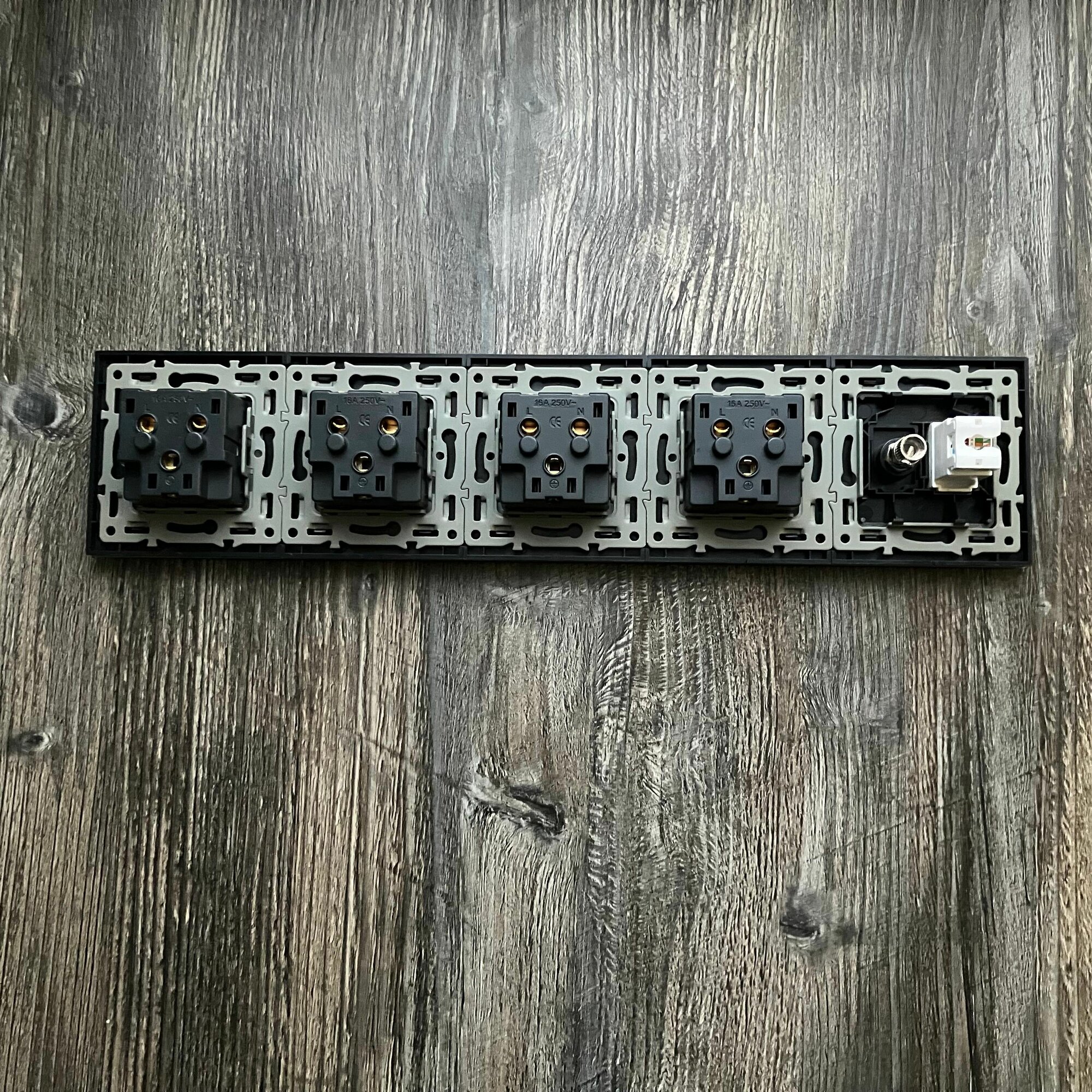 СохранитьРозетка ТВ и интернет 5 постов, антенна ТВ/компьютер RJ-45 CAT6, рамка закаленное стекло 366*82*8 мм, цвет серый интересное: