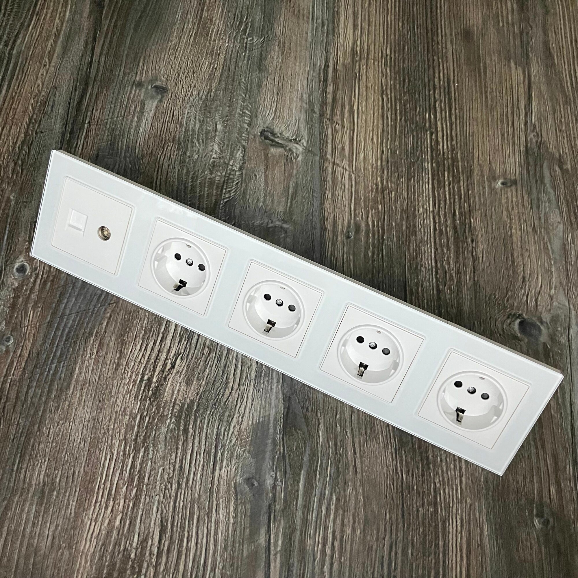 Розетка ТВ и интернет 4 поста, антенна ТВ/компьютер RJ-45 CAT6 рамка закаленное стекло 295*82*8 мм, цвет белый