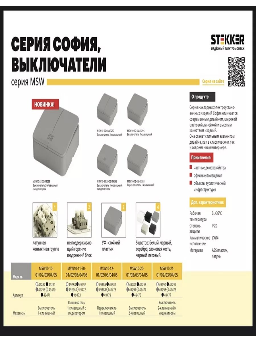 СохранитьВыключатель STEKKER София, одноклавишный, накладной, слоновая кость интересное: