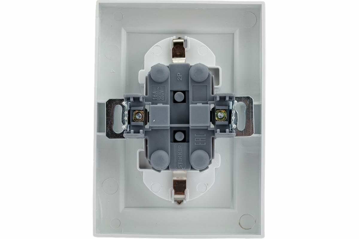 Розетка двойная Stekker Эрна "PST16-9014-03" с заземлением и защитными шторками, 16 А. Белая 39240