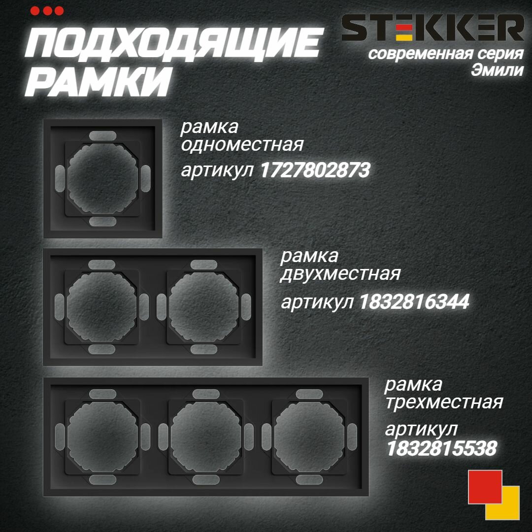 Выключатель одноклавишный (механизм), 250В, 10А, серия Эмили, черный уголь, soft touch, 71х71х40 мм, Stekker 49839 интересное: