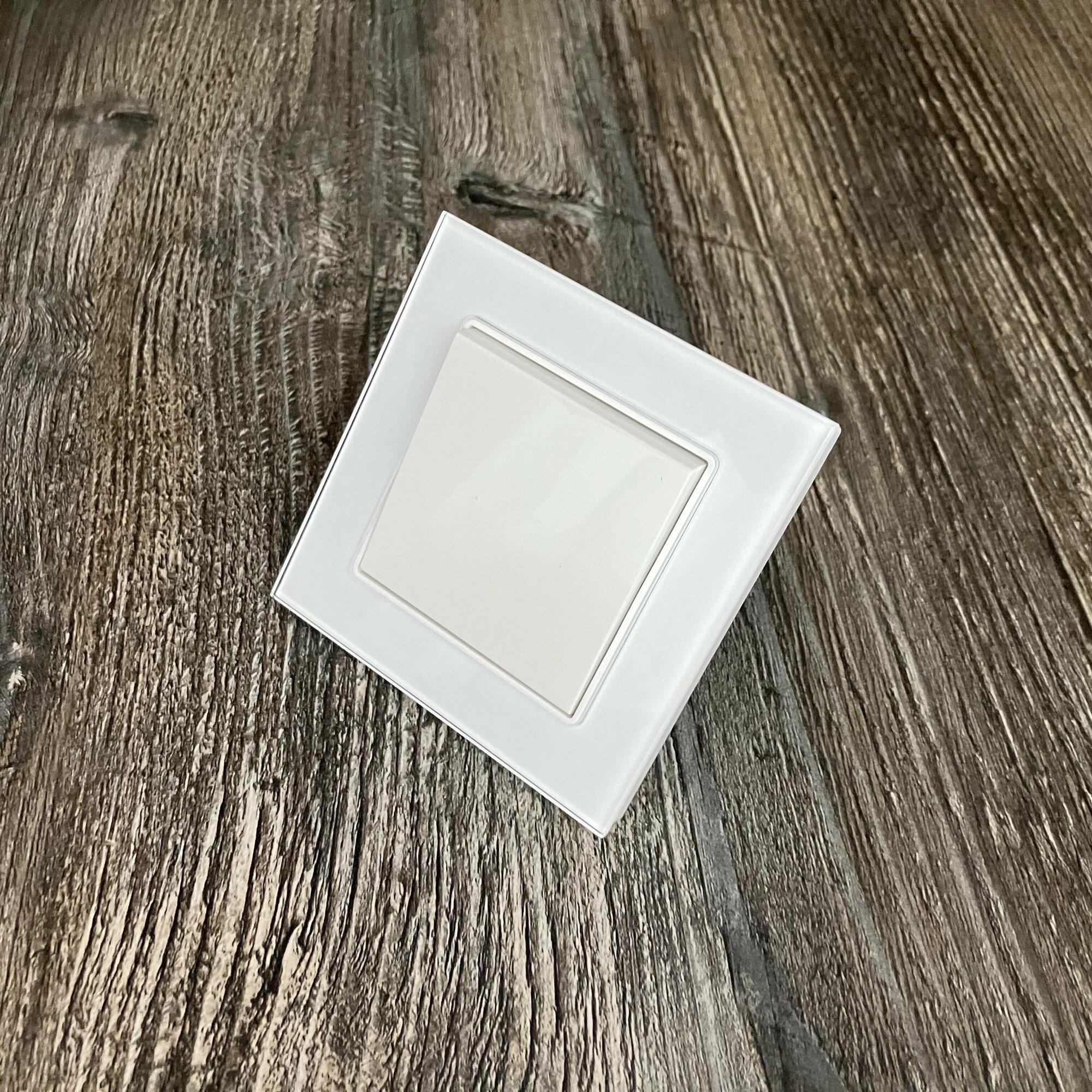 Купить Выключатель одноклавишный, рамка из закаленного стекла, белый