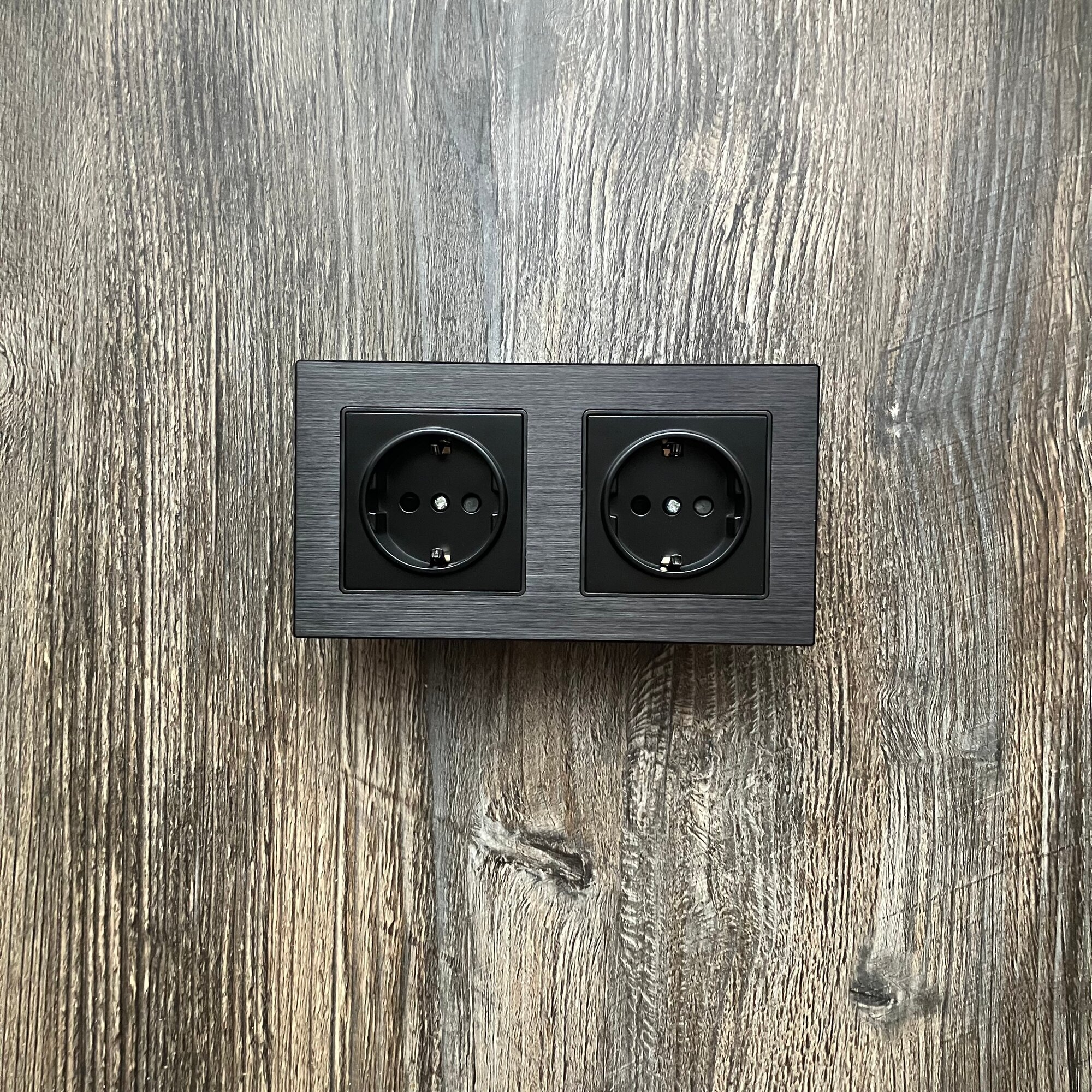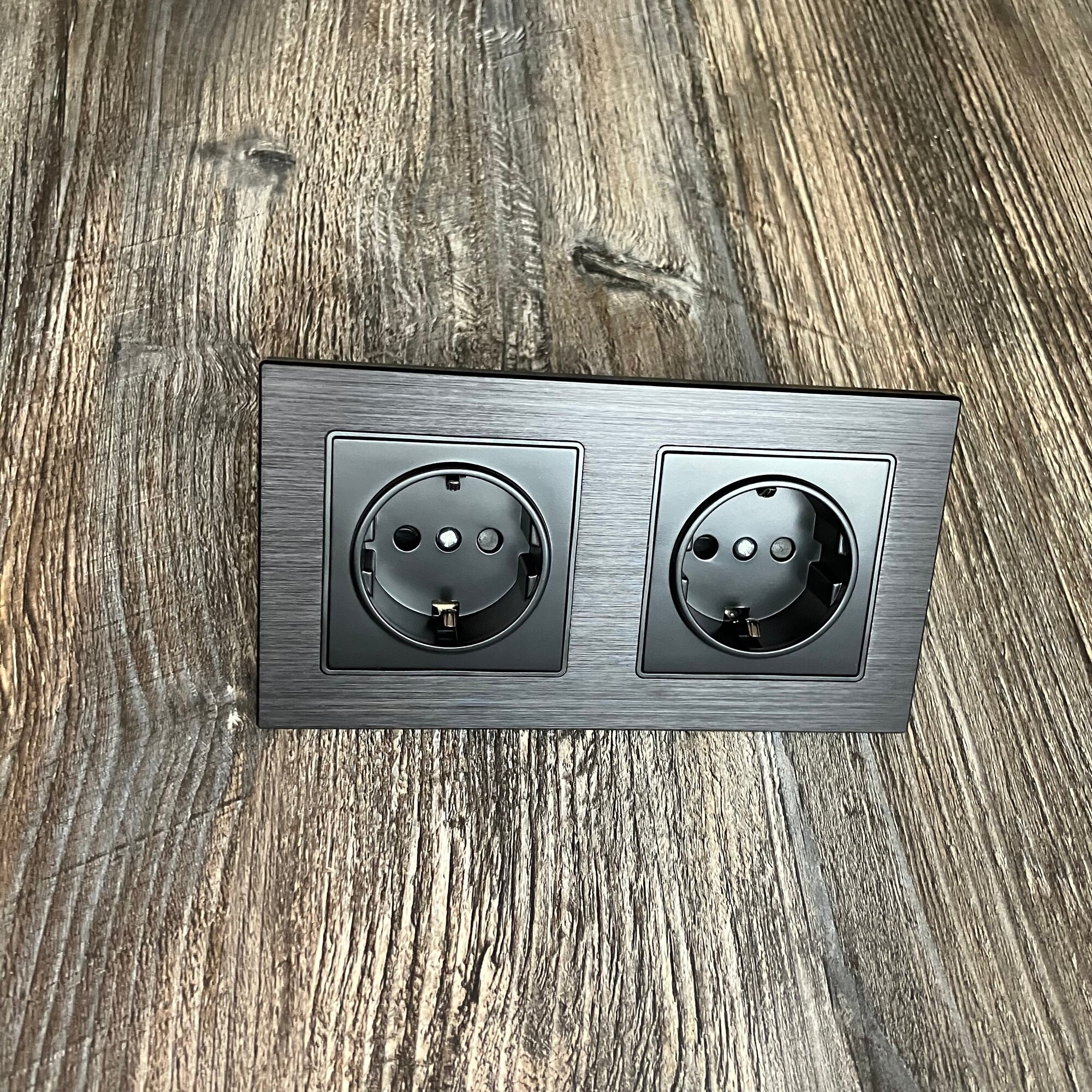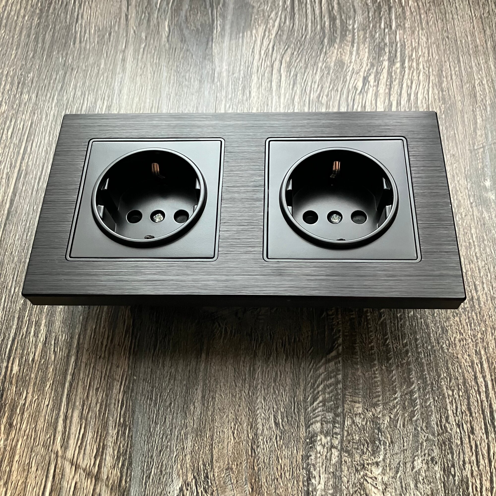 Купить Розетка двойная 220в 16А рамка из металла на 2 пост алюминий, чёрный