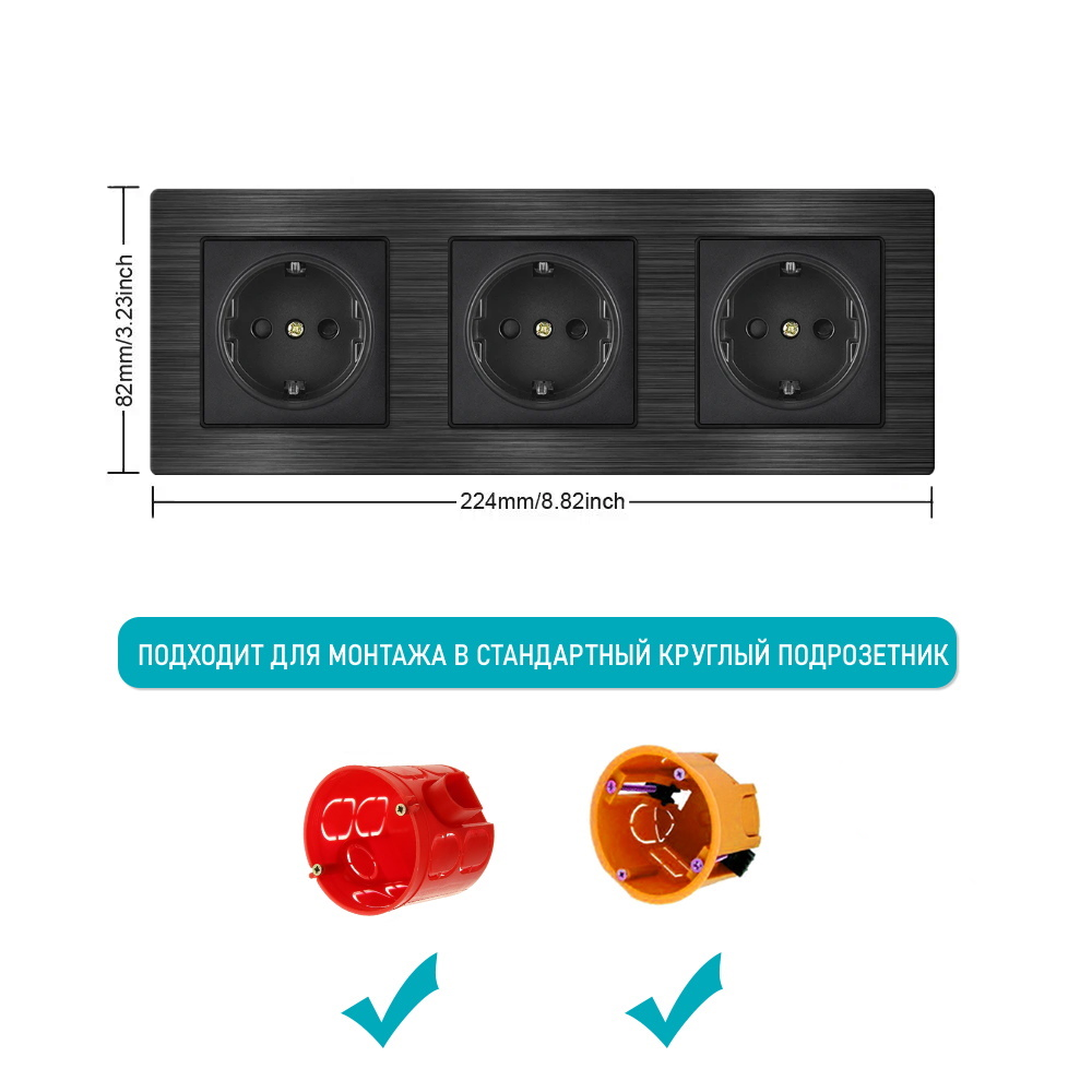 СохранитьРозетка тройная 220в 16А рамка из металла на 3 пост алюминий, чёрный интересное: