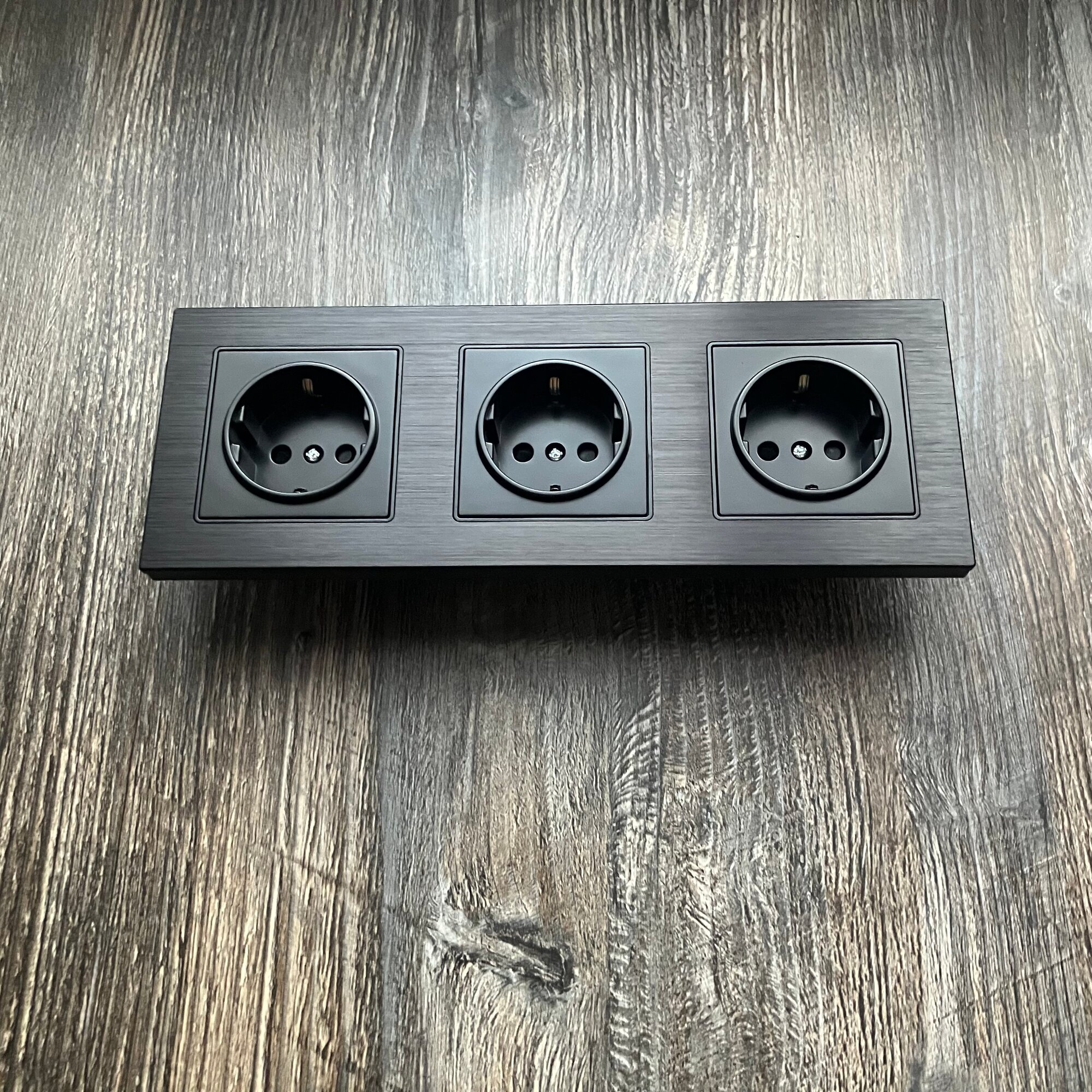 Купить Розетка тройная 220в 16А рамка из металла на 3 пост алюминий, чёрный