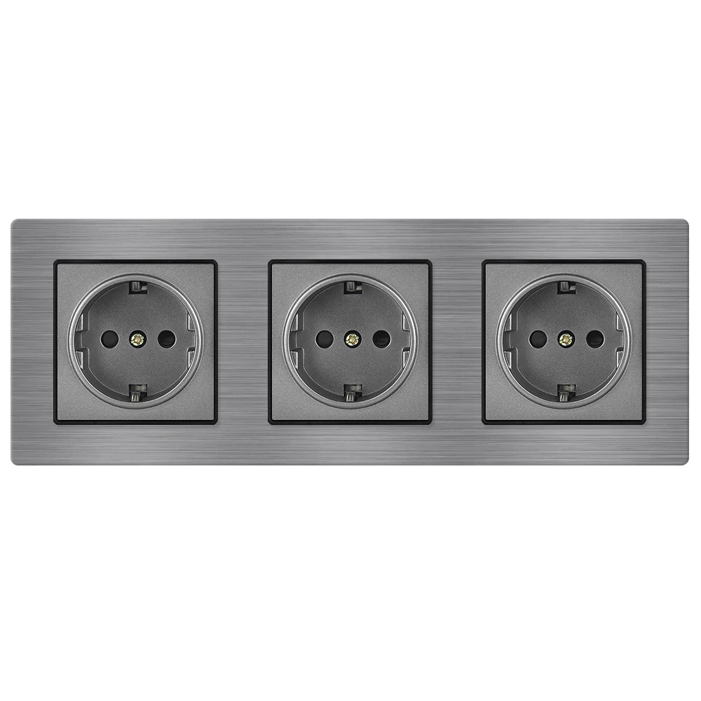 Купить Розетка тройная 220в 16А рамка из металла на 3 пост алюминий, Светло-серый
